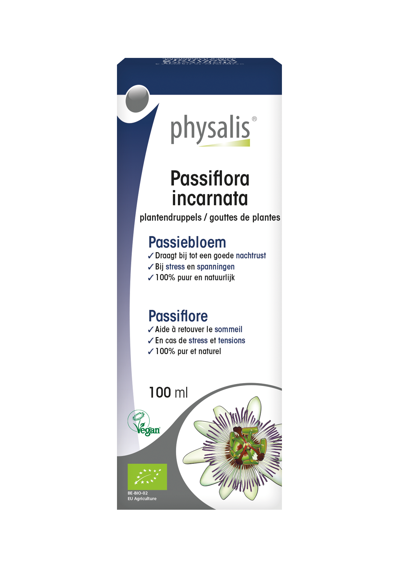 Physalis Passiflora incarnata bio plantendruppels werken ondersteunend bij nervositeit van alle aard. Passiebloem is voor zowel volwassenen als kinderen een volledig natuurlijke en veilige oplossing die al eeuwen gekend is voor de beheersing van zenuwen en het ondersteunen van een goede nachtrust.