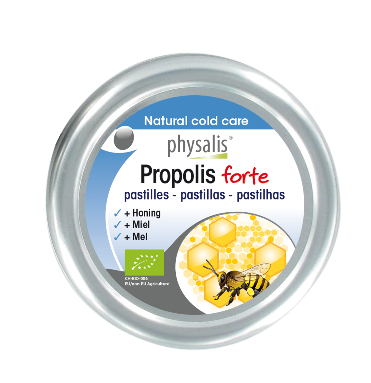 Ingrediënten: geleermiddel: arabische gom*, suiker*, glucosesiroop*, propolisextract* (2,5%), ho-ning* (2%), essentiële oliën: sinaasapppel*, citroen*, glansmiddel: carnaubawas*. *biologische teelt
